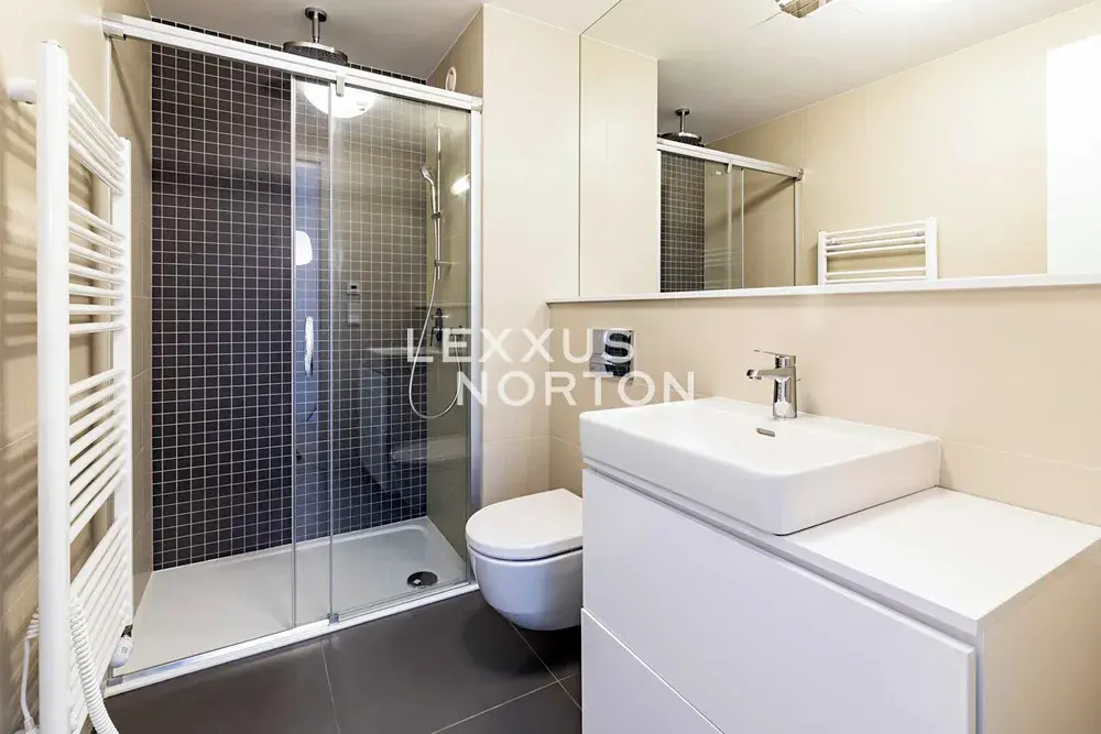 Nabízí se jako nezařízený. Součástí vybavení jsou vestavěné skříně. Kuchyňský kout je plně vybaven sporákem, troubou, lednicí, mrazákem, myčkou nádobí a mikrovlnnou troubou. K dispozici jsou tři koupelny – dvě se sprchovým koutem typu walk-in a jedna s vanou.