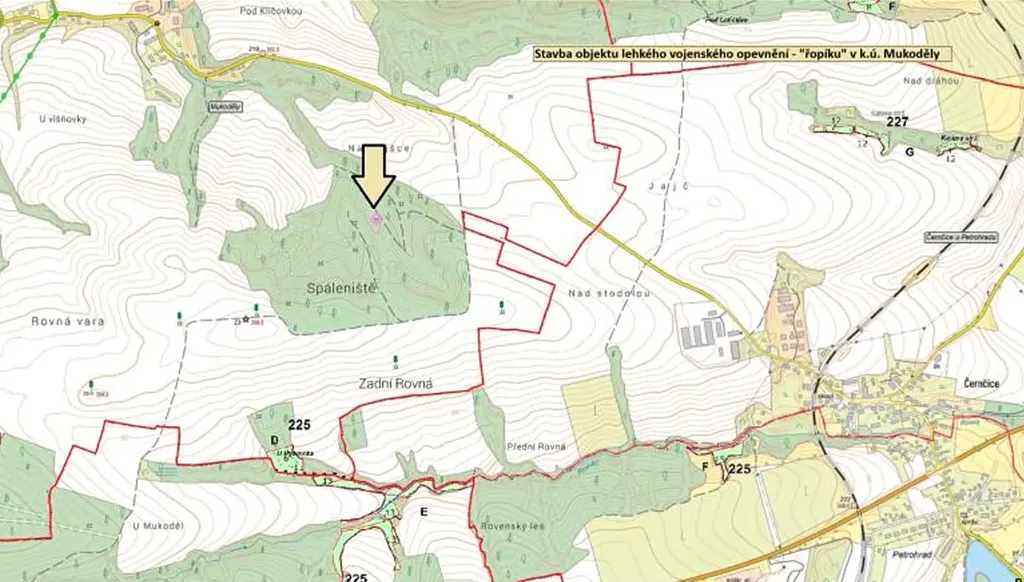 Prodej stavby lehkého vojenského opevnění, tzv. "řopíku" na pozemku p. č. st. 79 v k. ú. Mukoděly. Pozemek je v majetku jiného vlastníka a není předmětem prodeje.
