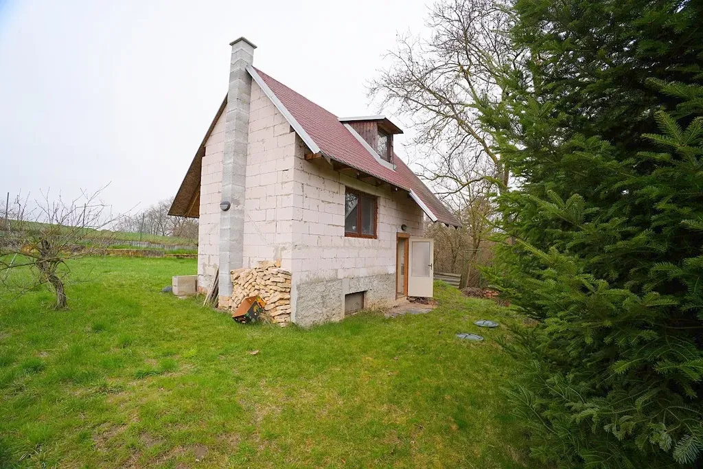 Atraktivní nabídka prodeje rozestavěné zděné chatky s pozemkem 394 m2, obec Běloky, okres Kladno. Stavba chatky těsně před dokončením se nachází na stavební pozemku o ploše 394 m2 s jižní orientací, dle územního plánu určeném k zastavění rekreačním domem – chatou. Chatka má zastavěnou plochu 24 m2 a je plně podsklepená. V přízemí se nachází obytná místnost s kuchyňským koutem, koupelna se sprchovým koutem, toaletou a umyvadlem, zádveří a dřevěné schody do podkroví. V podkroví je jedna místnost ve dřevě s výhledem do okolí. Chatka leží v klidné zahradní části obce Běloky v docházkové vzdálenosti od centra obce. Tato zahradní oblast je oplocená pod uzavřením. Do chatky a na pozemek je přivedena elektřina, voda je ze společné studny a odpad z chatky sveden do 3komorového septiku. Vytápění je kamny na dřevo. Obec Běloky leží necelých osm kilometrů od hranice Prahy – Ruzyně. V centru obce je autobusová zastávka směr k metru trasy A – Veleslavín a do centra Kladna. Uvedená cena zahrnuje provizi RK.