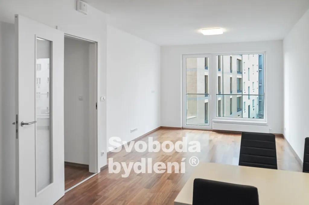 Světlý obývací pokoj disponuje moderní luxusní kuchyňskou linkou, jež je vybavena všemi potřebnými spotřebiči (varná deska, elektrická a mikrovlnná trouba, lednice, myčka). Je zde také dostatek prostoru pro jídelní stůl. Francouzskými dveřmi vejdeme na balkón, jenž je orientován na západ do klidové zóny vnitrobloku. Vstupní chodba je vybavena věšákem. Koupelna nabízí komfort vany, je zařízena umyvadlem se zrcadlem a topným žebříkem, je zde instalována také pračka. Vysoký komfort zajišťují kvalitní materiály a zařizovací předměty v podobě např. velkoformátových italských obkladů či sanitární keramiky Villeroy Boch. Nedílnou součástí vyššího standardu bydlení je také systém rekuperace, jenž umožňuje větrání v obytných místnostech bez nutnosti otevírání oken, což zabraňuje nežádoucímu úniku tepla a zachování zvukové pohody v interiéru. Na podlahách je položena dřevěná podlaha.