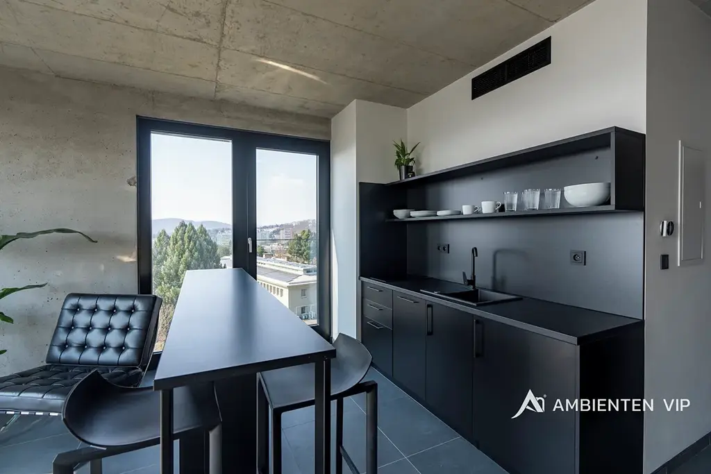 Standardem každé jednotky je plné vybavení zahrnující - postel o rozměru 160 × 200 cm a vestavěné úložné prvky, pracovní kout a barový pult, klimatizaci a venkovní žaluzie, systém chytré domácnosti Loxone, plně vybavenou kuchyň včetně myčky a nádobí. Celkový koncept vytváří harmonické a funkční prostředí ideální pro moderní městský život.