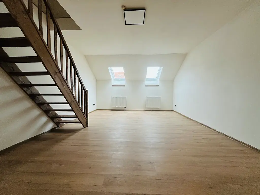 Pronájem mezonetového bytu v centru Prahy - o velikosti 3+kk + šatna + komora, Praha 5 - Smíchov, cca 90 m2, 4. patro bez výtahu v cihlovém domě. Byt prošel kompletní a nákladnou rekonstrukcí - rozvody elektřiny, vody, koupelny, podlah, omítek a nátěrů. Kuch.linka na míru včetně vestavěných spotřebičů - trouba, mikrovlná trouba a sklokeramická varná deska. Hezké řešení bytu - kuch.kout samostatně, prostorný obývací pokoj, v patře jsou dva neprůchozí pokoje s klimatizací. Koupelna se sprchovým koutem. K dispozici úložné prostory.
