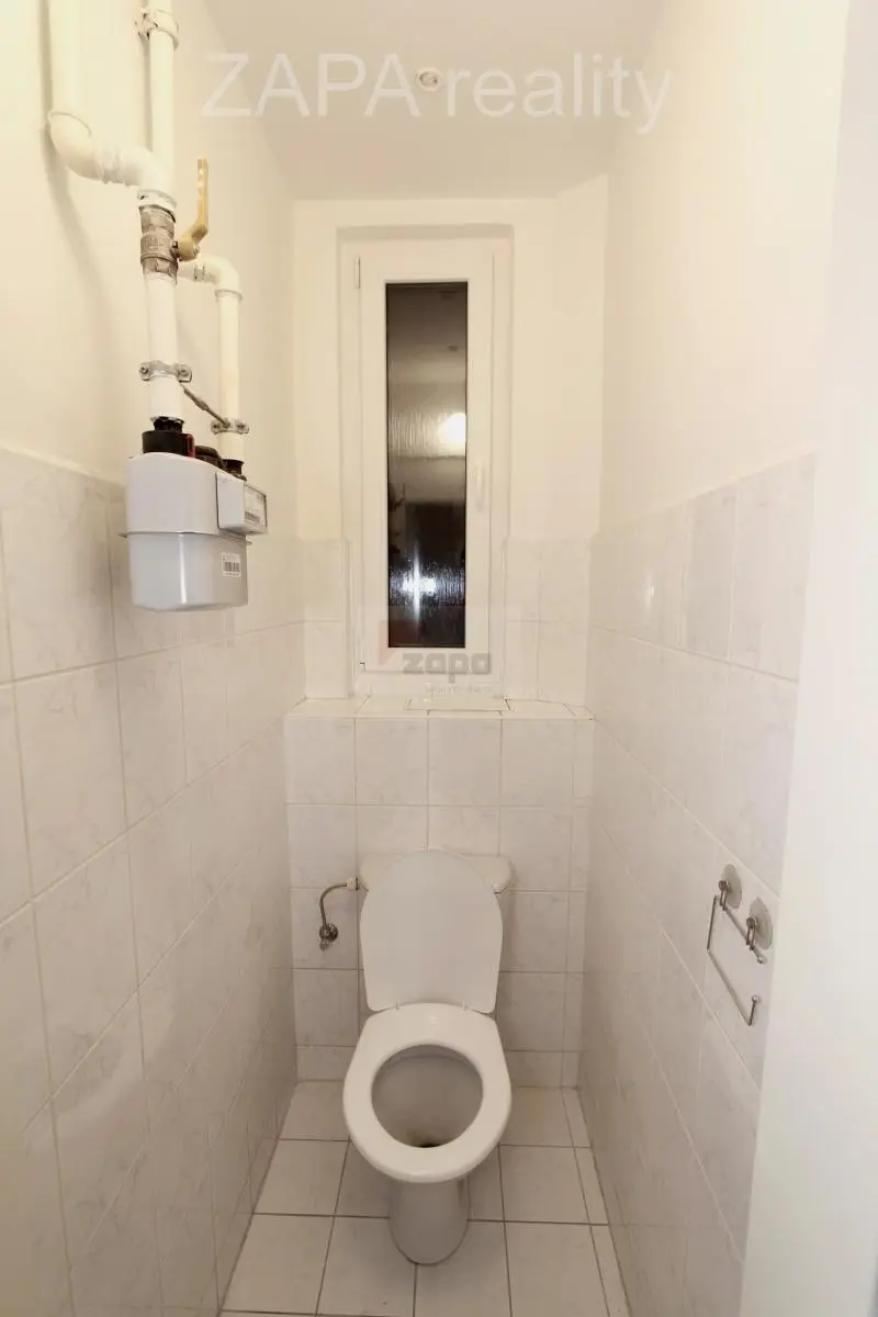 Obývací pokoj je průchozí do ložnice (s okny do klidné ulice), kuchyň je samostatná neprůchozí s komorou (s okny do vnitrobloku), prostorná koupelna se vstupem z předsíně je se sprchovým koutem a kde je možné umístit pračku a sušičku, WC je samostatné a oddělené (vše viz plánek bytu). Topení je ústřední- vlastní plynový kotel (nový).