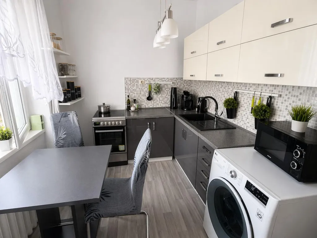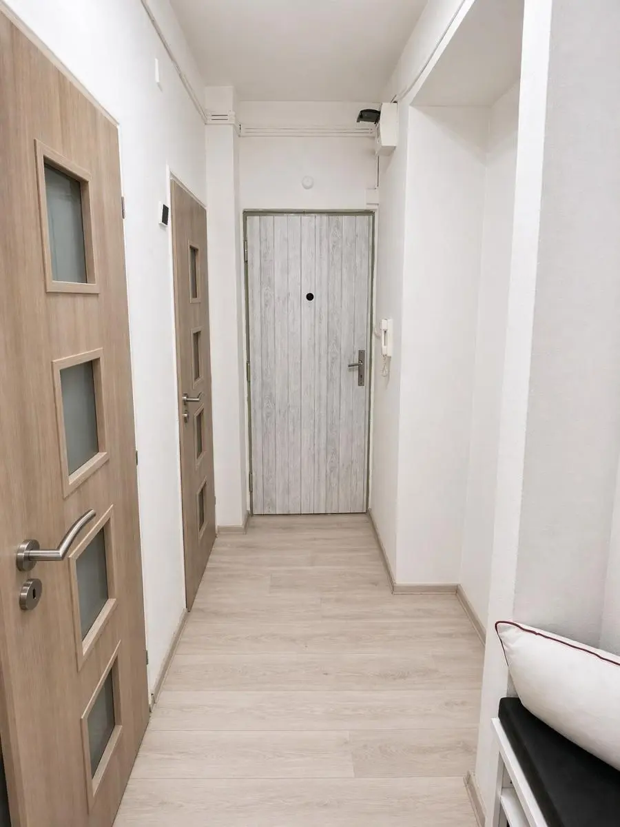 V kuchyni je pěkná kuchyňská linka s elektrickým sporákem. Koupelna obložena moderními obklady a vybavena vanou, WC odděleno. Byt je vzdušný a prostorný.