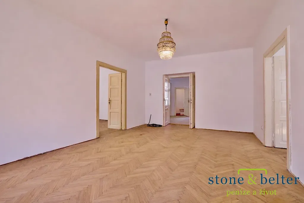 Bonusem je nadstandardně velká vstupní místnost (17,2 m²), kterou je možné přebudovat k různému využití. Byt vyžaduje kompletní rekonstrukci (vyjma oken směřujících do ulice) a náleží k němu sklep (3,8 m²).