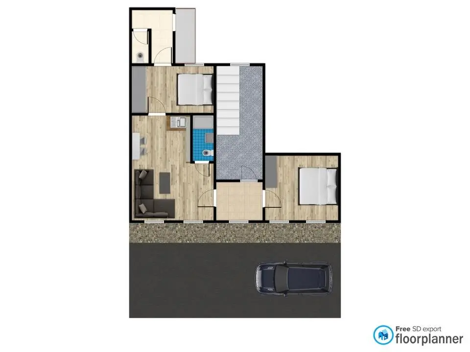 Byt nabízí velkorysý obývací pokoj s kuchyní (23,6 m²), dvě samostatné ložnice (15 m² a 12 m²), koupelnu s WC (3 m²), druhé samostatné WC (1,7 m²), dvě předsíně (5,6 m² a 4,8 m²) a balkón (3 m²).