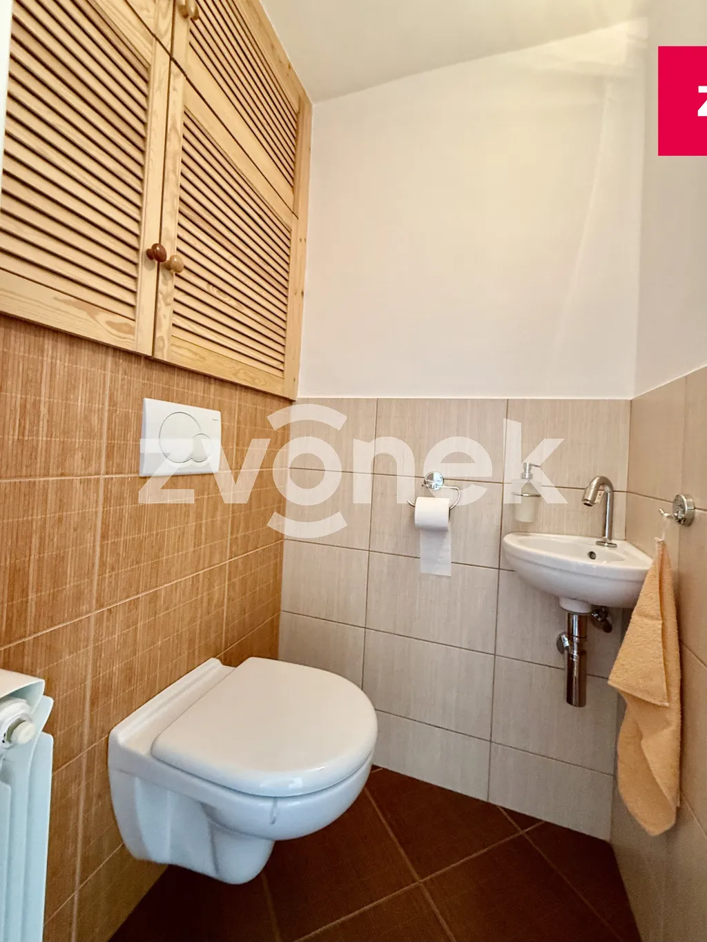 V přízemí domu se nachází zádveří, chodba se schodištěm, vstup do prostorného obývacího pokoje a dále přes chodbičku vejdeme do kuchyně, WC s umývadlem a spíže. Je zde i východ do dvorní části. V podkroví jsou dva samostatné pokoje, koupelna se sprchovým koutem, zvlášť WC a šatna.
