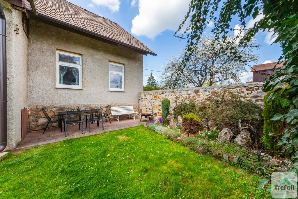 Na pozemku se nachází také vedlejší stavba, kde se nachází útulné zahradní kuchyně s posezením – perfektní místo pro letní večery s rodinou a přáteli. a vedlejší prostor je pro uskladnění dřeva a věcí na zahradu.
