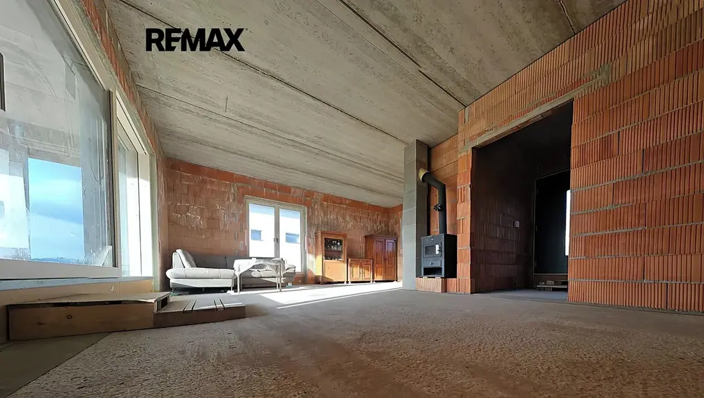 5+kk, obytná plocha 139 m2, terasa téměř 50 m2. Rovinatý pozemek o celkové ploše 1.282 m2