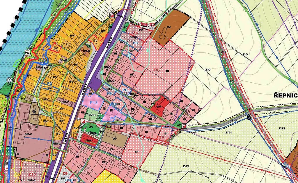 - zastavitelnost nových pozemků max. 30% (u přestavbové plochy P9 je povolená zastavitelnost max.60%) do které se započítávají veškeré zpevněné plochy, přístřešky, terasy zastřešené i nezastřešené, bazény, zahradní domky a podobné stavby