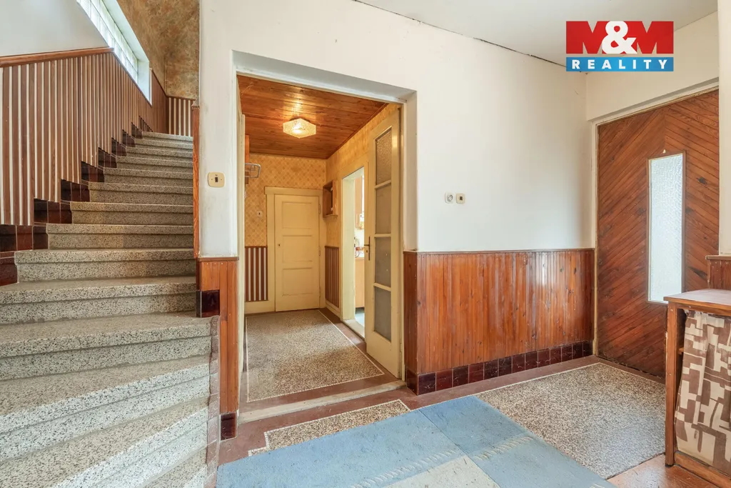 Nabízíme k prodeji rodinný dům s jedinečnou atmosférou a velkým potenciálem, situovaný v klidné a malebné obci Karlík (Praha-západ), jen kousek od přírody i hlavního města.Dům z roku 1934 s přístavbou z roku 1952 je zděné (cihlové) konstrukce a nabízí užitnou plochu 148 m². Nachází se na prostorném pozemku o celkové výměře 933 m² (z toho zahrada 595 m²), který je mírně svažitý k jižní straně – ideální pro relaxaci na zahradě.Přízemí (75,75 m²) tvoří veranda, chodba, schodiště, samostatné WC, koupelna, kuchyň a dva pokoje.Obytné podkroví (72,24 m²) nabízí tři pokoje, chodbu, šatnu a příjemnou terasu s výhledem do okolí. Dům je částečně podsklepený – k dispozici jsou dva sklepy, bývalá prádelna, kotelna a další technické zázemí. Nechybí ani půdní prostor, který může posloužit jako další úložné místo nebo nabídnout potenciál pro budoucí úpravy. Velkým benefitem je právě lokalita Karlík – kombinace přírody, soukromí a dobré dostupnosti do města dělá z této nabídky skvělou příležitost.