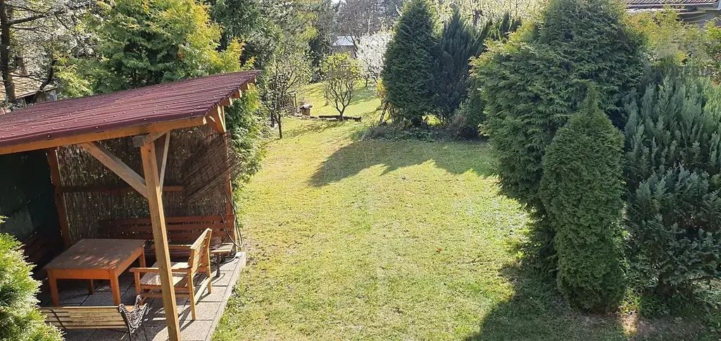 Nemovitost o UP 98 m² (ZP 49 m²) se nachází na slunném pozemku 804 m² (šíře cca 11 m) s udržovaným trávníkem, ořešákem a ovocnými stromy, obklopeném vzrostlou zelení, která zajišťuje příjemné soukromí.