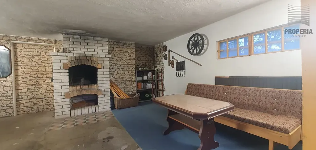 1. PP (47 m², technická část): Společenská místnost s krbem (30 m²), dílna s ponkem, dva sklady ( pro kola, lyže, zahradní techniku).