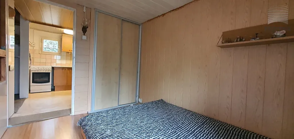 1. NP (obytná část): Obývací pokoj (21 m²) se vstupem na slunnou terasu (9,6 m²), ložnice (8 m²), kuchyně s el. sporákem a troubou, koupelna se sprchovým koutem, splachovacím WC, automatickou pračkou a el. bojlerem 80 l, předsíň. V 1.NP je z velké části provedeno vnitřní zateplení polystyrenem a vatou (5 cm).