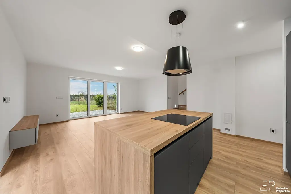 Podlahová plocha činí 117 m², k dispozici je zahrada o velikosti 331 m² s terasou (20 m²). Před domem jsou dvě parkovací stání na vlastním pozemku, součástí je také příprava pro wallbox pro elektromobil.
