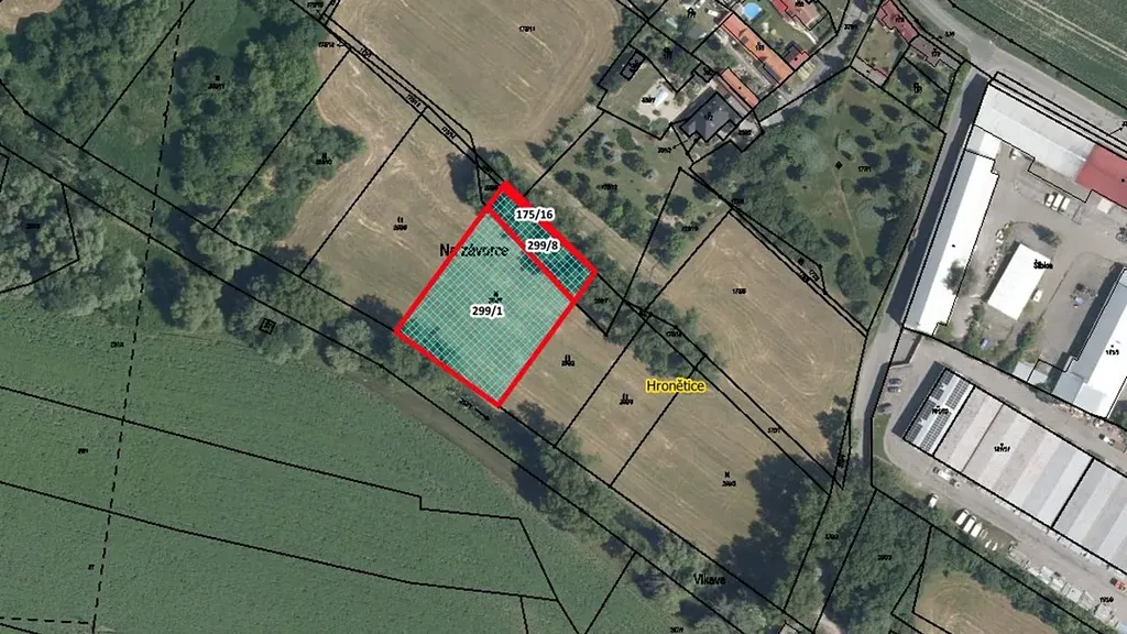 Nabízíme k prodeji atraktivní pozemky p.č. 299/1 o výměře 2 416 m2, p.č. 175/16 o výměře 49 m2 a p.č. 299/8 o výměře 528 m2 v katastrálním území Hronětice. Pozemky jsou ve výhradním (100 %) vlastnictví (LV č. 411). Nachází se v klidné části katastru a jsou v současnosti řádně obhospodařovány místním zemědělcem. Přístup zajištěn přes obecní pozemky.