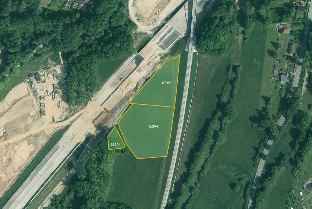 parcela č. 629/5 - orná půda, celkový výměra z 4 076 m², výměra k prodeji 2 038 m²