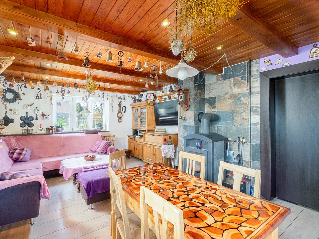Variabilita vytápění – k dispozici jsou hned tři zdroje: krbová kamna s výměníkem, kotel na tuhá paliva a elektrokotel. V koupelně a předsíni navíc oceníte nezávislé podlahové vytápění. O příjemné klima v létě se postará klimatizace s dálkovým ovládáním přes telefon.