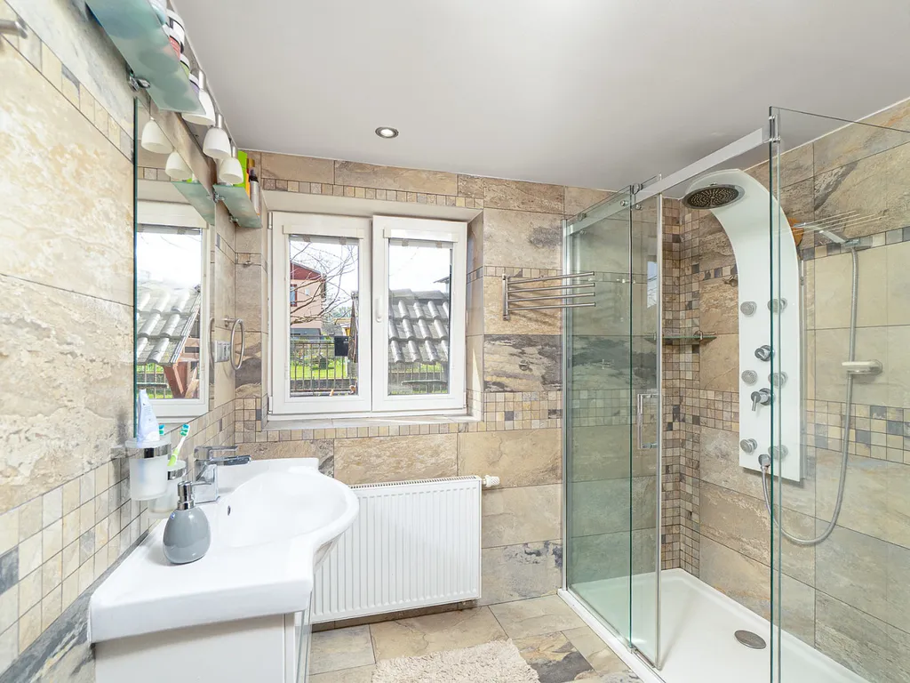 Dispozice nabízí 2 koupelny se sprchovým koutem a WC, což zajišťuje pohodlí i pro větší rodinu či hosty.