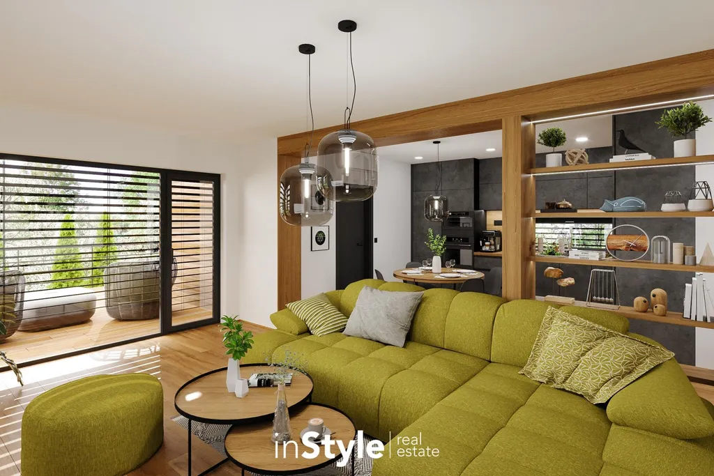 Celkem 18 samostatně stojících bungalovů obklopené zelení poskytnou klid, bezpečí a soukromí i těm nejnáročnějším klientům. Především díky prosklenému obytnému prostoru je skvěle propojený interiér s exteriérem. Všechny domy splňují již svým základním vybavením náročné standardy a požadavky na současné moderní bydlení.