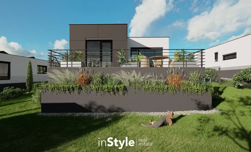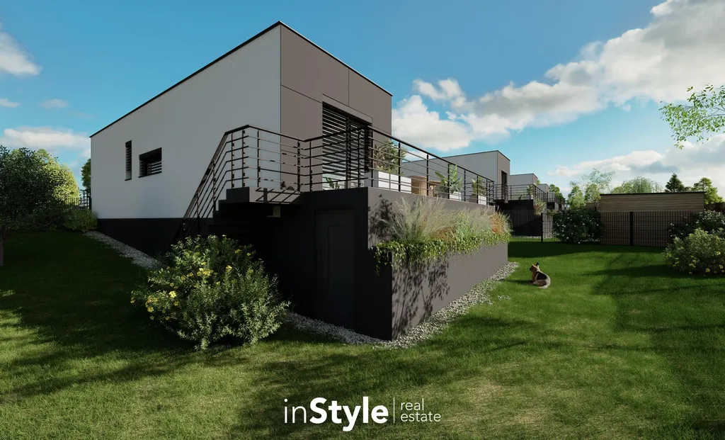 Exkluzivní rodinný dům č. 8, který se rozléhá na pozemku o celkové rozloze 493 m2, nabídne designové bydlení ve vysokém standardu. Ve všech rodinných domech budou použity kvalitní povrchové materiály a důraz je kladen na detail, bezpečnost a komfort bydlení.