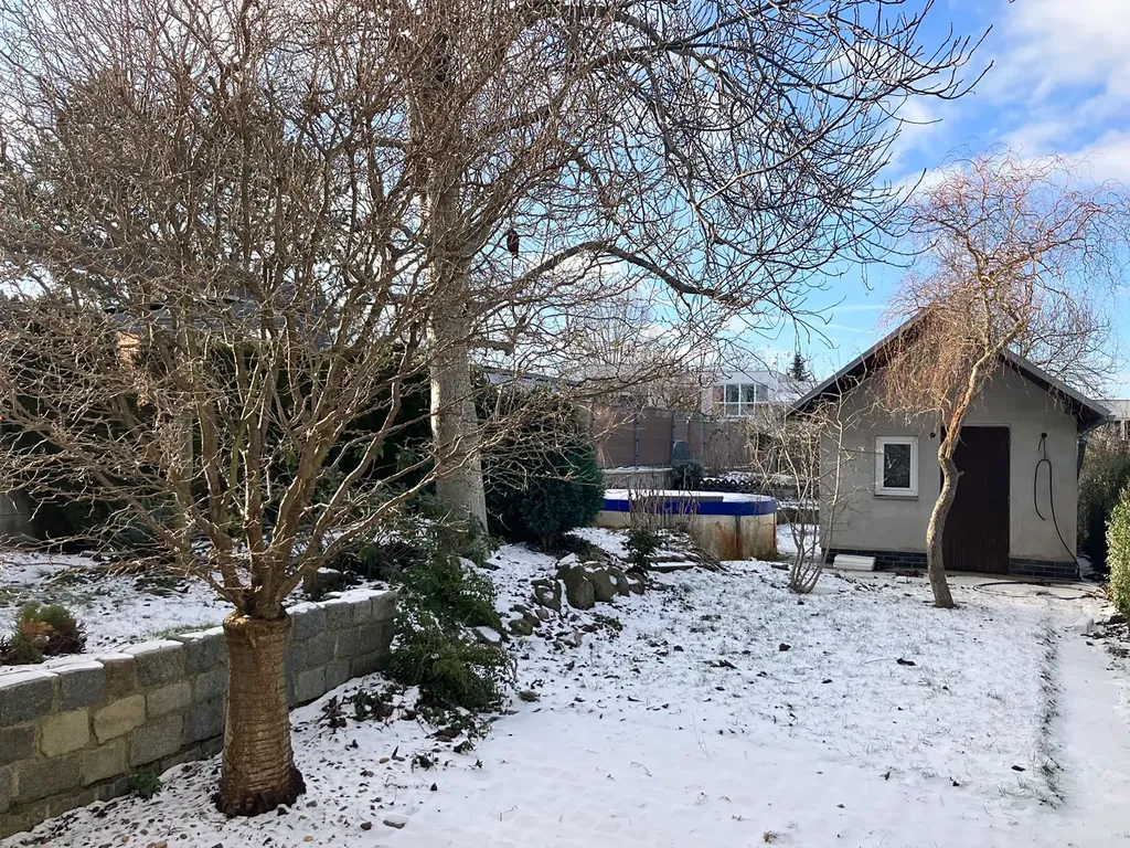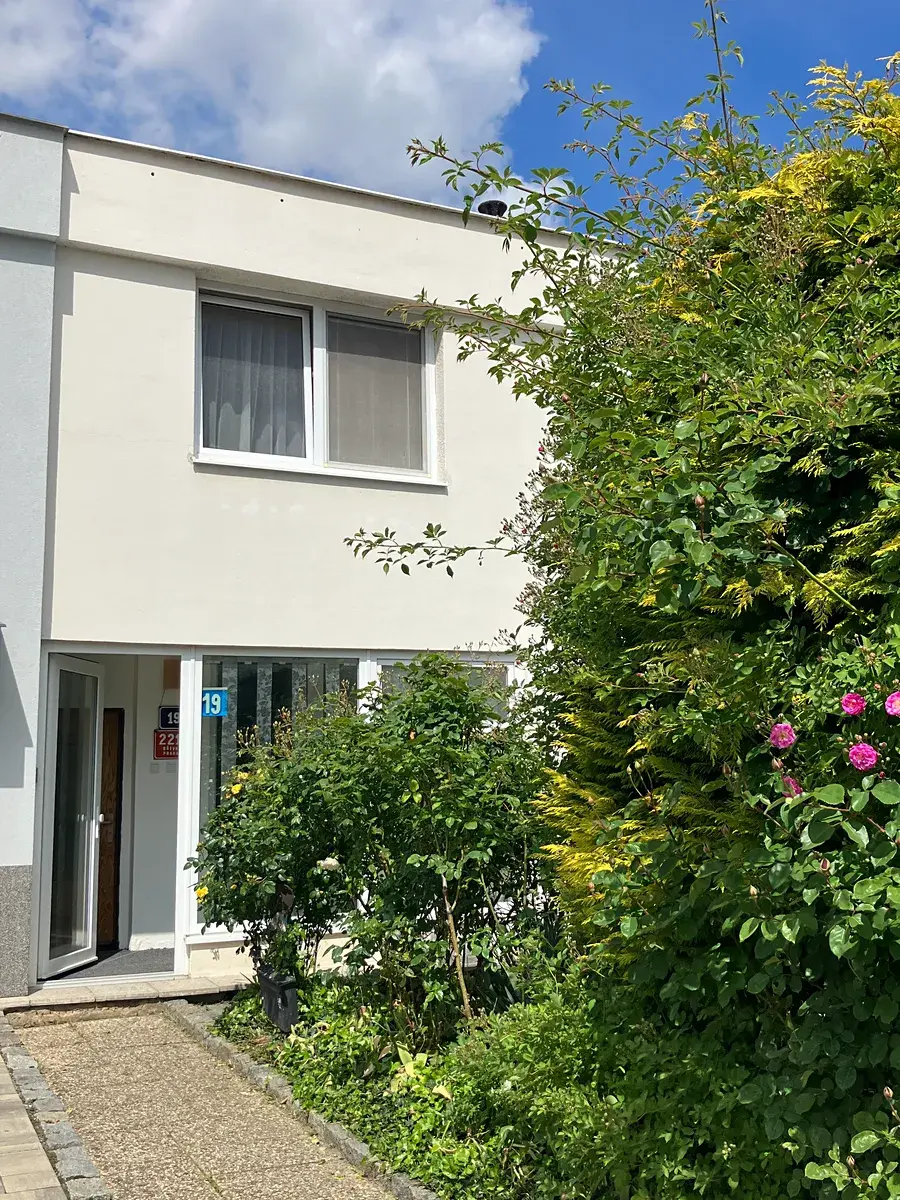 Před domem je na vlastním pozemku parkovací místo a za domem příjemná užitková a okrasná zahrada s nadzemním bazénem a zahradním domkem, který může sloužit jako pracovna, sauna apod.