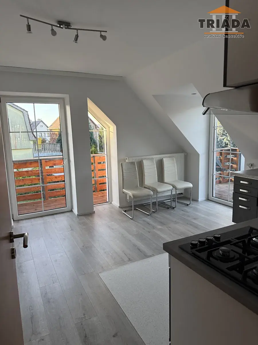 Nabízíme pronájem bytu 3+kk ve 2.NP rodinného domu v Turnově ul. Čapkova. Byt je po částečné rekonstrukci v dobrém stavebně-technickém stavu. Dispozice: chodba se schodištěm, obytný pokoj, velká koupelna s vanou a WC, obytný pokoj s kuchyňským koutem a balkónem, obytný pokoj s balkónem. Teplá voda a topení ústřední - tepelné čerpadlo, VVŘ, el. energie 230/400V, kanalizace obecní. Pěkné a klidné místo ve vilové části města. Cca 5 min chůze je ZŠ, MŠ, městský park a 10 min chůze je to do centra města. Měsíční nájem 17 000 Kč, zálohy na energie 4000 Kč. Skládá se tříměsíční vratná kauce. Celková plocha bytu je 63,5 m2.