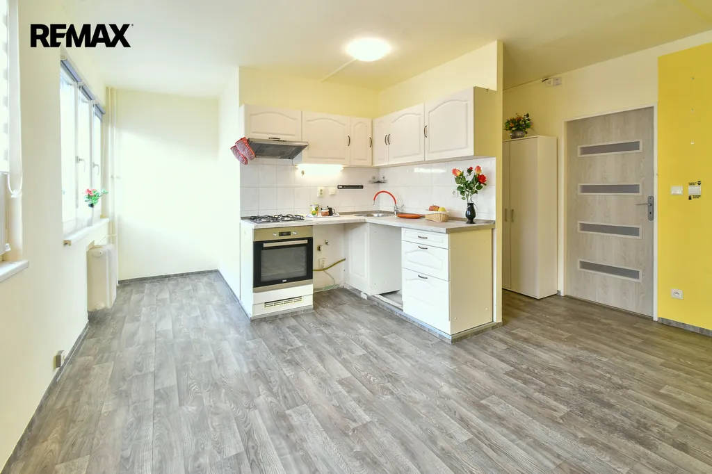 Společnost RE/MAX Future Vám nabízí jedinečnou možnost koupě bytu, 2+kk, v osobním vlastnictví, ve 4.NP, v panelovém domě, v ulici V Koutech, v Hradci Králové. Byt je o celkové výměře 54,5 m2 včetně sklepa o velikosti 3,5 m2 a balkonu o velikosti 4 m2. Výhledy z ložnice i z kuchyně jsou do vnitrobloku. Dům je v dobrém, udržovaném stavu bez výtahu, částečně zateplený. K dispozici je i kolárna a sušárna. Byt je částečně vybavený: kuchyňskou linkou s plynovým sporákem a digestoří, v předsíni jsou tři šatní skříně a v ložnici jsou dvě šatní skříně. Z ložnice je vstup na balkon.