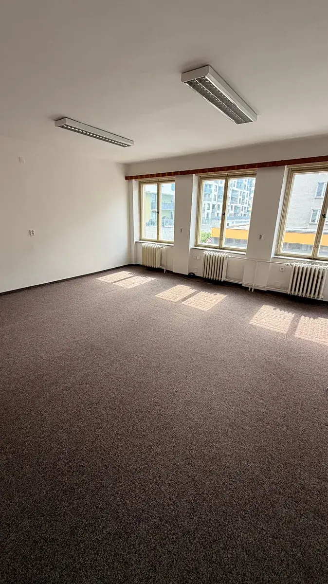 Vybavení a služby: V rámci budovy máte k dispozici společné sociální zařízení. Podlaha je pokryta zátěžovým kobercem, což přispívá k pohodlnému a profesionálnímu prostředí.