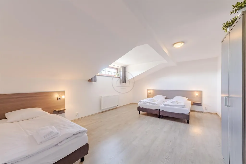 Jedná se o největší objekt v areálu Residence Lipno. Správcovská společnost zajišťuje provoz a údržbu areálu, včetně infrastruktury, recepce a dětské hřiště. Platí se cca 40.000, Kč ročně za vše (internet, údržba, veř. osvětlení, odpad atd.) kromě spotřeby elektřiny, která je zvlášť. Lze využít efektivní správy pronájmu nemovitosti v době Vaší nepřítomnosti. Předmětem prodeje je obchodní podíl účelově založené společnosti, která dům výlučně vlastní.