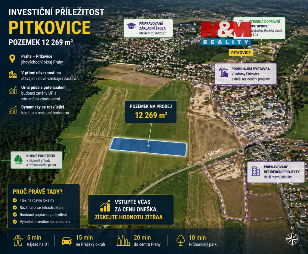 V bezprostředním okolí aktuálně probíhá výstavba rezidenčních projektů (např.Viladomy Pitkovice), rozšiřuje se infrastruktura a připravuje se nová základní škola, což potvrzuje další rozvoj této části Prahy.