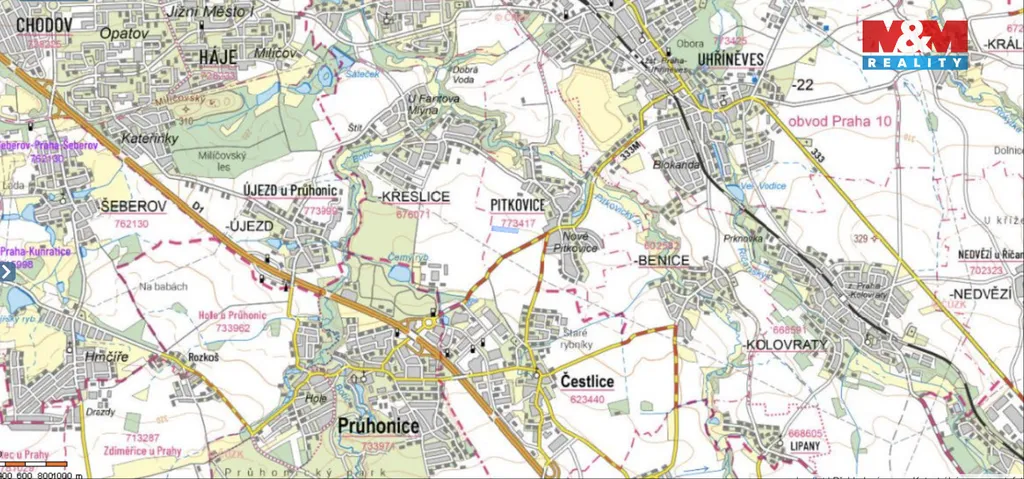 Strategická poloha na jihovýchodním okraji Prahy, v blízkosti Průhonic a kompletní občanské vybavenosti.
