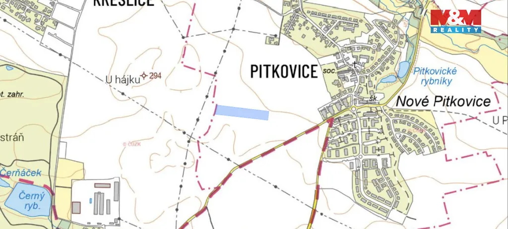 Lokalitou velmi zajímavý pozemek o výměře 12 269 m² v katastru Pitkovic, v přímé návaznosti na stávající i nově vznikající zástavbu.