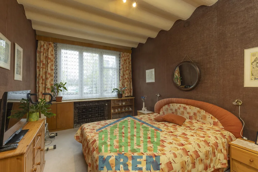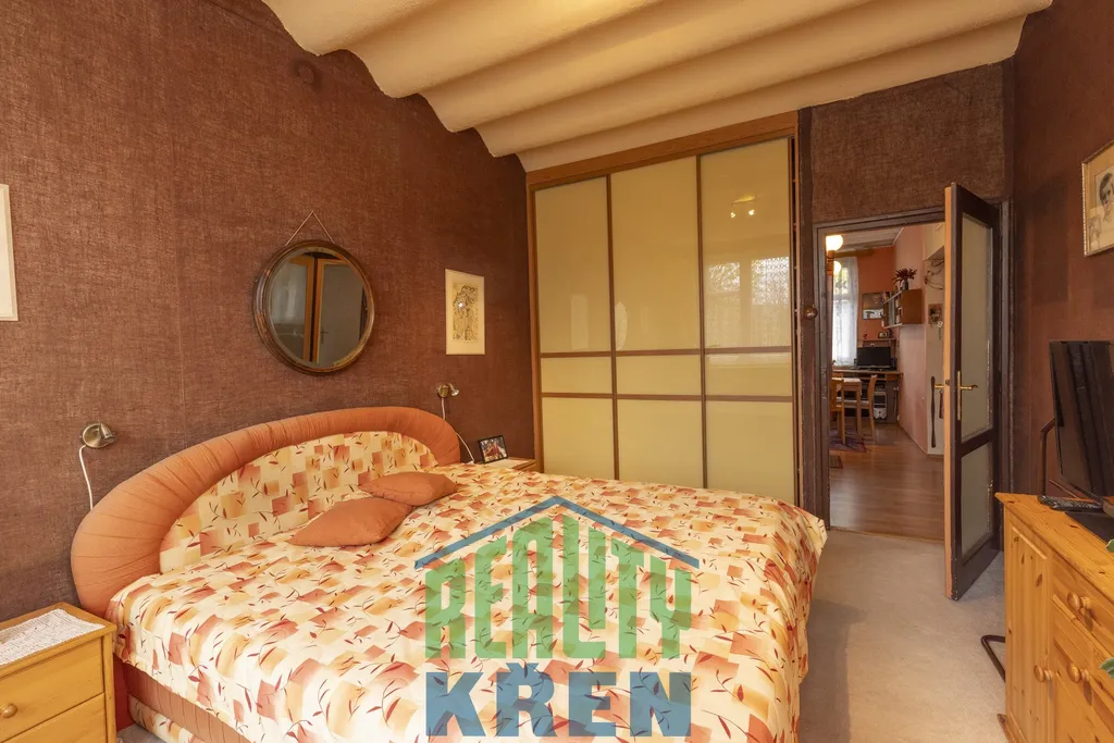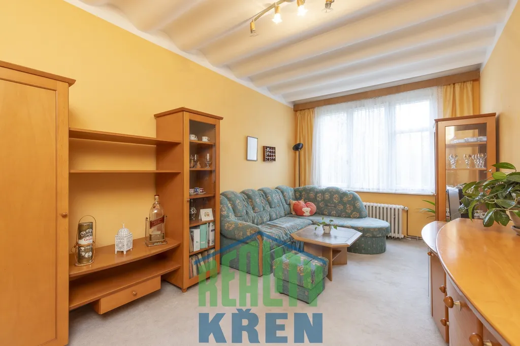 Vstupní hala s krbovými kamny 18 m2, obývací pokoj se sektorovým nábytkem a vstupem na lodžii 25 m2, kuchyně s vybavenou kuchyňskou linkou 8,5 m2, 2x neprůchozí ložnice 16 m2 a 19 m2, koupelna s vanou, samostatné WC, spíž, 2x šatna. K bytu náleží komora na patře a sklep 6m2 v suterénu domu. Byt i dům po rekonstrukci. Oplocená zahrada za domem ke společnému užívání, bezproblémové parkování. Veškerá občanská vybavenost v místě, výborná dopravní dotupnost.