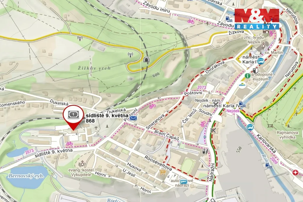 Nabízíme k prodeji zrekonstruovaný byt 2+1 o ploše 53 m² v osobním vlastnictví, situovaný v přízemí cihlového domu na sídlišti 9. května v Nejdku u Karlových Varů. Byt je ve velmi dobrém stavu a připraven k okamžitému nastěhování bez dalších investic. Dispozice zahrnuje vstupní chodbu, obývací pokoj, ložnici či dětský pokoj, kuchyni a koupelnu s WC. K bytu náleží sklep (6 m²) a komora, které zajišťují dostatek úložného prostoru. Výhodou je klidný dům s dlouhodobými a slušnými sousedy, plastová okna, centrální vytápění a pohodlné parkování přímo před domem. Měsíční zálohy činí cca 3 500 Kč (bez energií), SVJ je bez dluhů, plánuje se rekonstrukce střechy. Lokalita nabízí klidné bydlení v blízkosti přírody s dobrou dostupností – Karlovy Vary cca 20 minut, vlak i autobus v docházkové vzdálenosti, v okolí škola, školka, obchody.