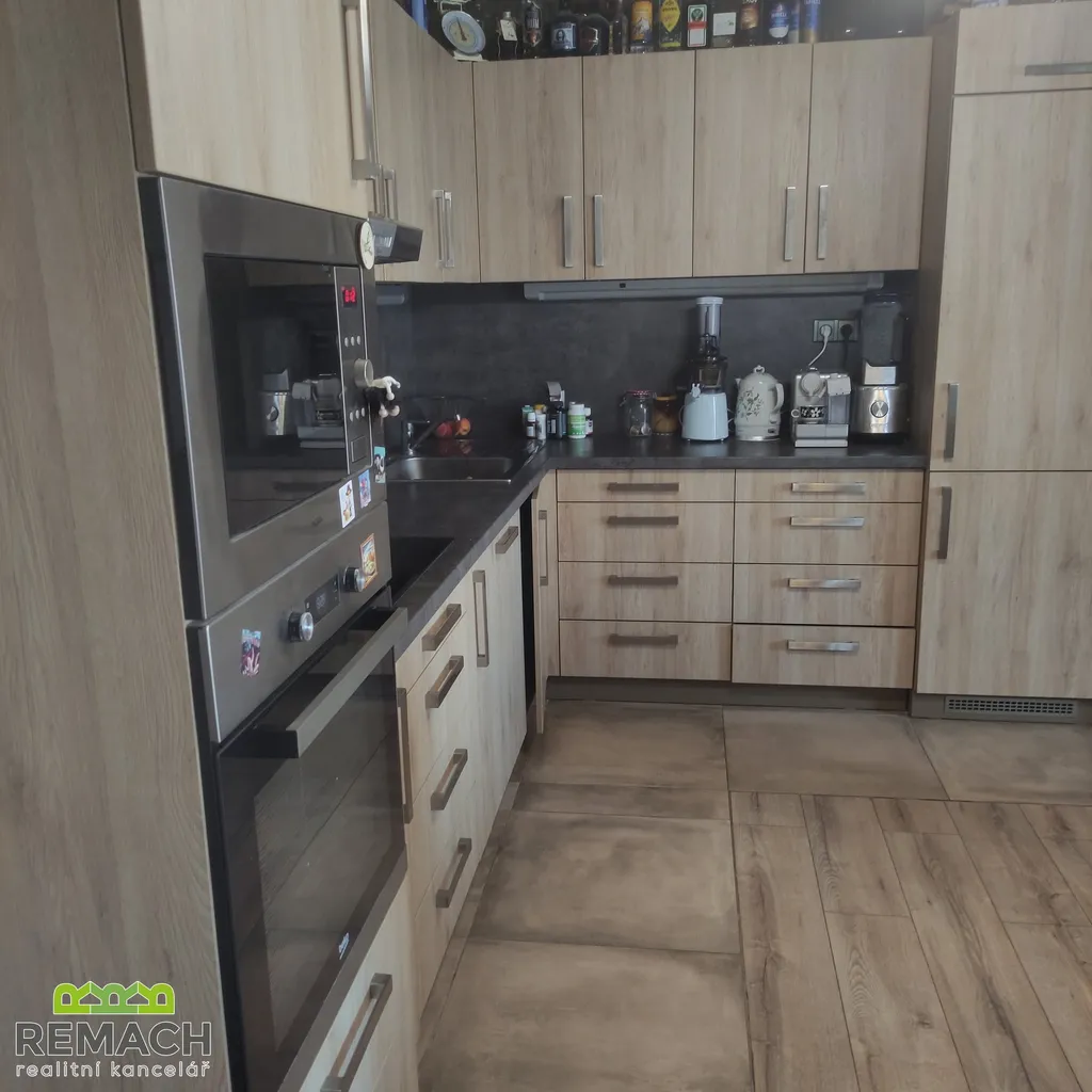 Byt je kompletně vybaven- kuchyňská linka se spotřebiči, nábytek - vestavěné skříně. Dispozice zahrnuje obývací pokoj s kuchyňským koutem, dvě ložnice a koupelnu s rohovou vanou.