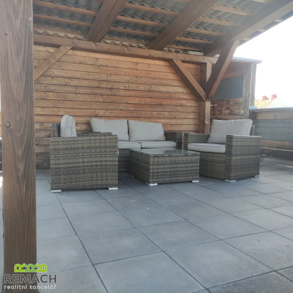 Nabízíme k pronájmu moderní a plně vybavený mezonetový ateliér o dispozici 3+kk (86m2), nacházející se přímo na Mariánském náměstí. Byt je situován v posledním patře historického domu a disponuje prostornou terasou (35m2) s krásným výhledem.