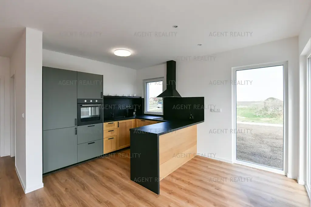 Novostavba nízkoenergetického (A) domu 5KK (141 m2) s terasou je provedena jako dřevostavba, založená na betonových pasech a základové desce. Stavba je jednopodlažní, nepodsklepená s obytným podkroví a je zastřešena sedlovou střechou s vikýři. Střešní krytina domu je plechová falcovaná. Vnější výplně otvorů jsou plastové, okna a dveře, nitřní výplně dřevotřískové foliované.