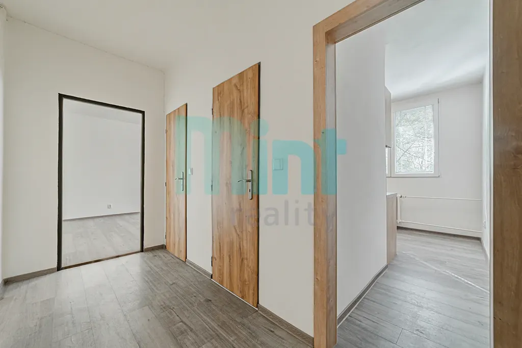 Byt se pyšní novým zděným jádrem, novými rozvody elektřiny a moderním interiérem, který zahrnuje plovoucí podlahy a nové interiérové dveře. Koupelna je prakticky oddělena od toalety a vybavena vanou, což přispívá k pohodlí a komfortu. Kuchyňská linka v dekoru dřeva nabízí dostatek úložného a pracovního prostoru, což ocení každý, kdo rád vaří a tráví čas v kuchyni.