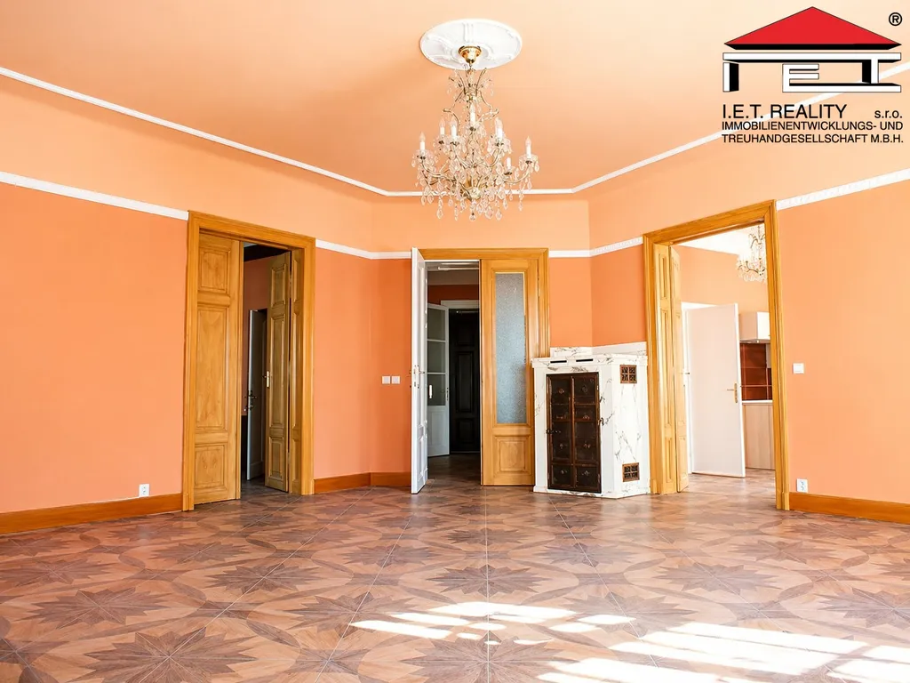 Nabízí nadstandardní vybavení – dvě WC, bidet, krb, původní křišťálové lustry, repasované vstupní dveře a velkoformátovou dlažbu. Součástí je plně vybavená kuchyňská linka se spotřebiči (trouba, varná deska, myčka, digestoř, lednice) a koupelna s rohovou vanou. K bytu náleží také nový sklep cca 6 m².