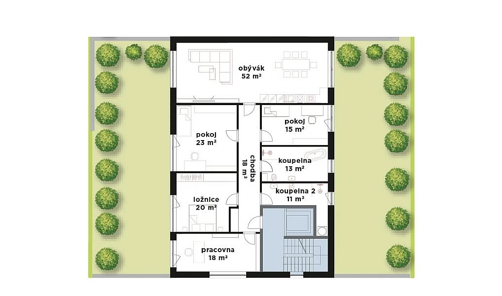 přímé vstupy na zahrady z obytných místností