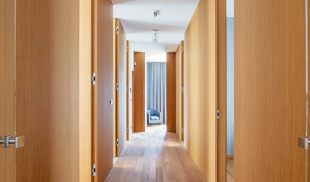 designové teakové dveře (výška 300 cm) a obklady