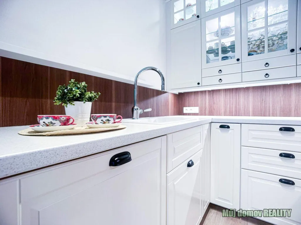Byt je částečně vybaven moderní kuchyňskou linkou s vestavěnými spotřebiči. Samozřejmostí je rekuperační jednotka pro zdravé vnitřní klima, plastová okna, kvalitní podlahy (vinyl a velkoformátová dlažba), vestavěná skříň na chodbě a moderní interiérové dveře.