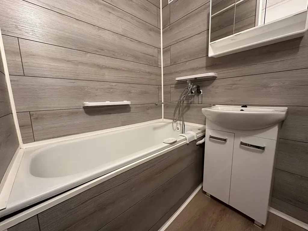 Koupelna je vybavena vanou a toaleta je oddělena. Byt je částečně zrekonstruovaný a připravený k okamžitému nastěhování. K dispozici je lednice, pračka a plynový sporák. Z prosklené lodžie je příjemný výhled do přírody směrem na Černostudniční hřeben.