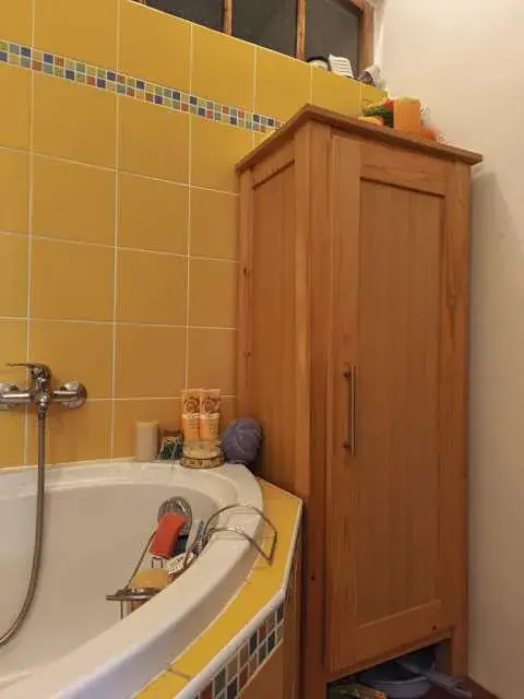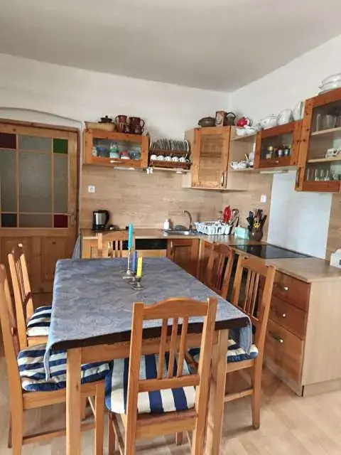 V zastoupení klienta nabízíme menší rodinný domek- využívaný jako chalupa v klidné části obce Podbořany- Buškovice. Majitelé z domku vytvořili útulnou chaloupku využívanou k k oddychu a rekreaci, s obytným podkrovím. Celá stavba prošla částečnými úpravami. Stáří stavby cca. 50 let. Stavba zděná, smíšená cihla, kámen. Střecha sedlová, střešní krytina tašky-bobrovky, 1x komín, okapy plech. Komín je nutné již nechat opravit. Starší fasádní nátěr. Stavba není zateplena, nemá podsklepení. Chalupa má podkrovní obytný prostor. Okna původní, dřevěná špaletová. V chalupě jsou nové omítky a podlahy. Vytápění krbovými kamny v přízemí, ohřev vody el. bojlerem. V podkroví se využívají k vytápění radiátory. Pitná voda z obecního vodovodního řádu, odpady řešeny trativodem, rozvody elektřiny v mědi, rozvody vody v plastu. Plyn není zaveden, je zřízena plynová přípojka u chalupy. Z obývacího pokoje je přístup tzv. francouzskými dveřmi na prostornou zastřešenou terasu. V zadní části domu vedle terasy je stavebně napojen přístavek využívaný jako úložný prostor. Dále se zde nachází udírna. Chalupa je o celkové dispozici 1+3. Přízemí sestává ze zádveří, technické místnosti, spižírny, kuchyně propojené s obývacím pokojem – zde je umístěn krb, a koupelny s toaletou. V kuchyni je umístěna zánovní menší kuchyňská linka, lamino, el. sporák, myčka nádobí. V koupelně jsou keramické obklady a dlažba a je zde instalováno sanitární vybavení: vana, umyvadlo a toaleta. Podlahy v přízemí: beton s krytinou plovoucí podlaha a keramická dlažba.