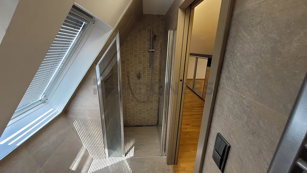 Koupelna je vybavena sprchovým koutem a umyvadlem. V nižším podlaží bytu se nachází samostatná toaleta.