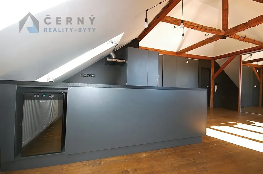 Byt je po kompletní, vkusné a nápaditě řešené rekonstrukci. Působí vzdušným a prostorným dojmem a nabízí komfort moderního vybavení včetně spotřebičů. Prosklená stěna s výstupem na terasu vpouští do prostoru spoustu denního světla a pohled z terasy je prostě nádherný. Atraktivní ráz bytu dotváří původní dřevěné stropní a podpěrné trámy, které byly zachovány a renovovány při rekonstrukci.
