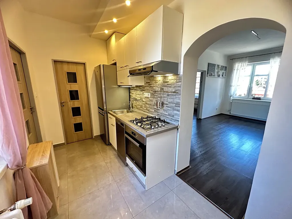 Byt zaujme světlým a vzdušným interiérem s promyšleným rozložením – nabízí tři samostatné pokoje, ideální jak pro rodinu, tak i pro spolubydlení. V jednom z pokojů najdete praktickou šatní skříň. Kuchyně je plně vybavená spotřebiči: plynový sporák, vestavěná trouba, myčka nádobí, digestoř i lednice – stačí se jen nastěhovat a začít bydlet. Koupelna disponuje prostornou vanou, umyvadlem, zrcadlovou skříňkou a dostatkem místa pro každodenní komfort.