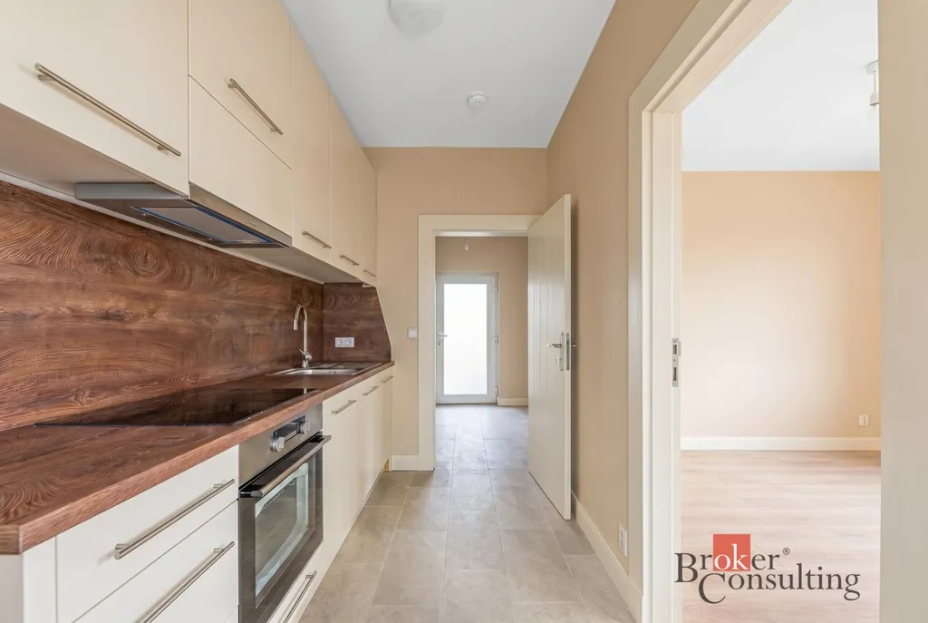 Byt je vybaven kuchyňskou linkou a vestavěnou skříní, které zajišťují dostatek úložného prostoru a pohodlí.