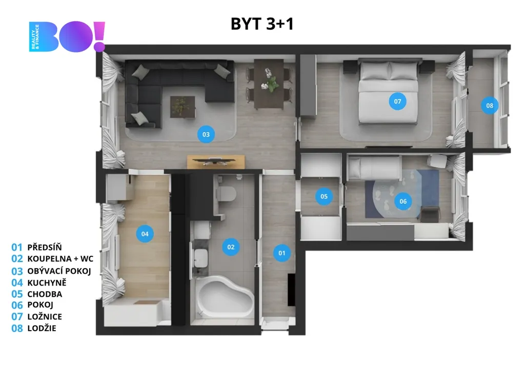 Byt prošel kompletní rekonstrukcí, díky čemuž nabízí komfortní a bezstarostné bydlení bez nutnosti dalších investic. Dispozice je ideální jak pro rodinu, tak i pro pár, který ocení dostatek prostoru.